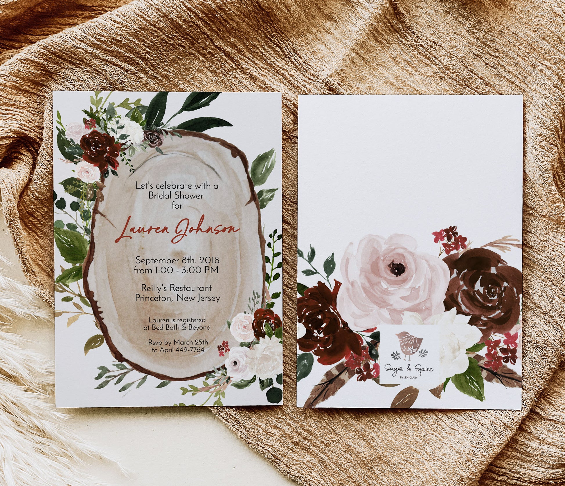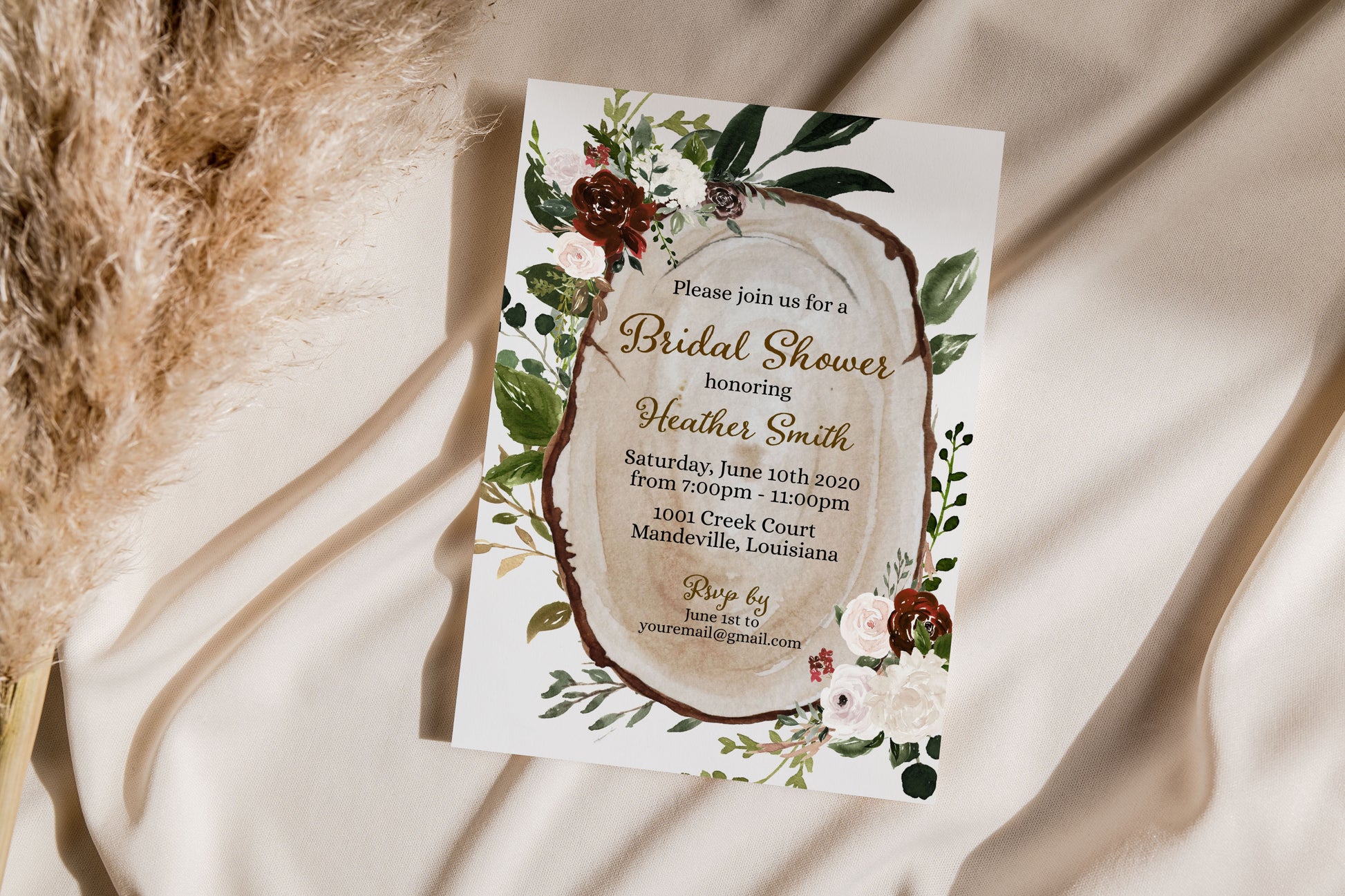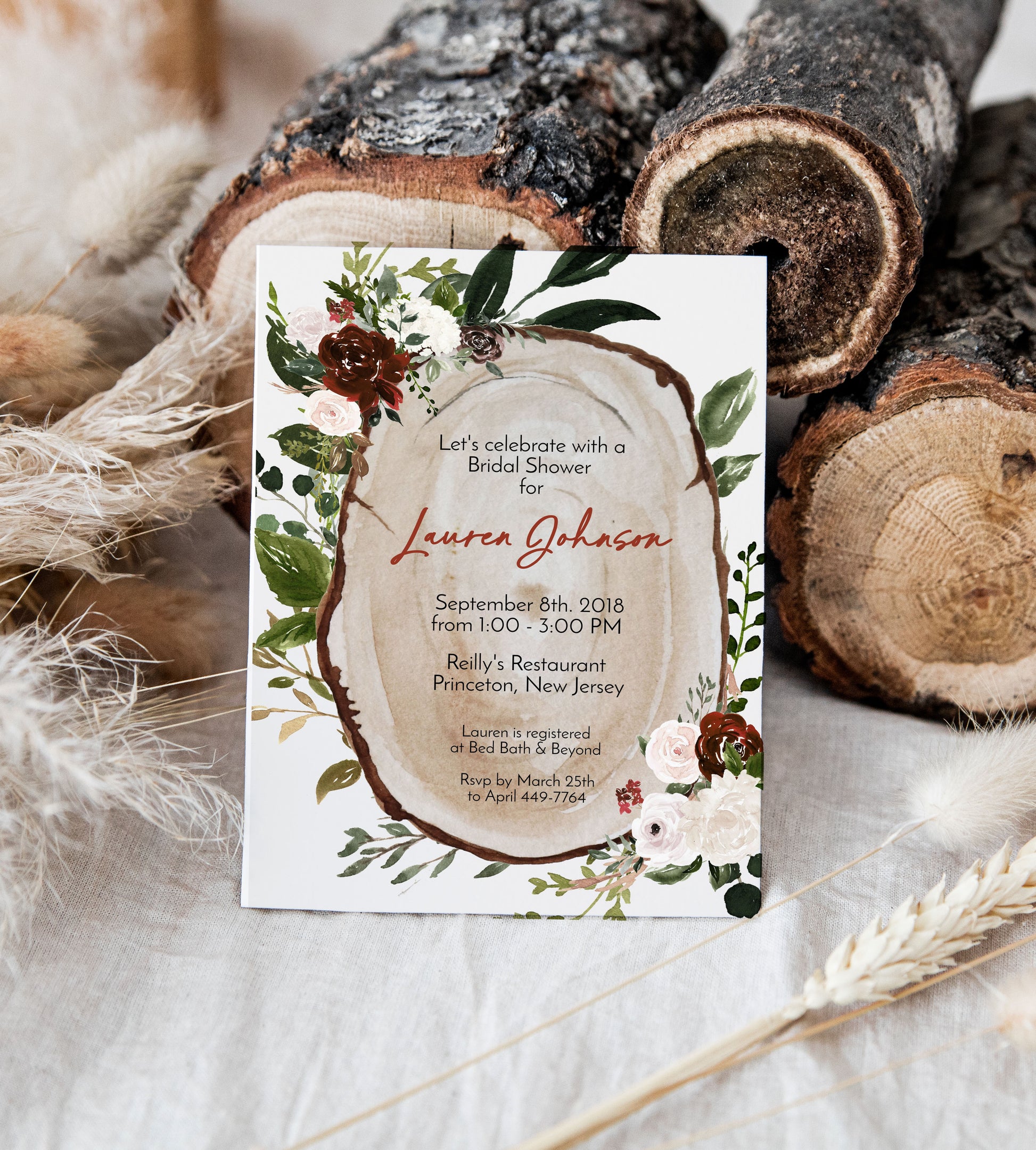 Boho Wood Slice Bridal Shower Invitation