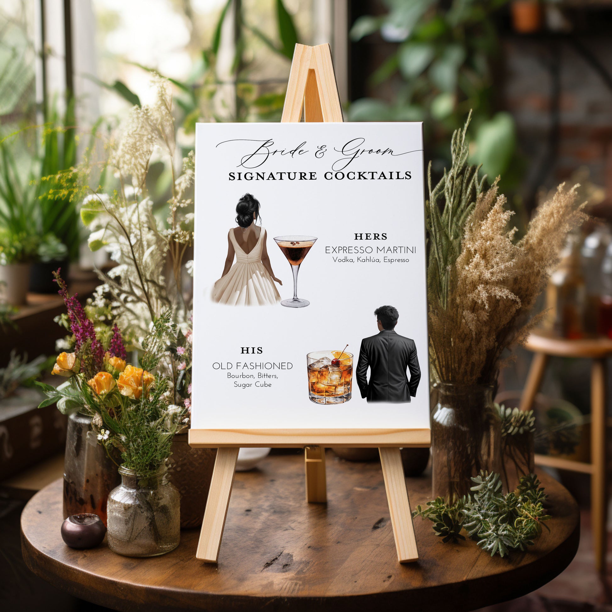 Create a personalized touch at your wedding with our Bride and Groom Custom Signature Drink Sign. Allow your guests to indulge in a unique experience with a sign exclusively designed for you and your partner. Your signature drinks will be a memorable addition to your special day.