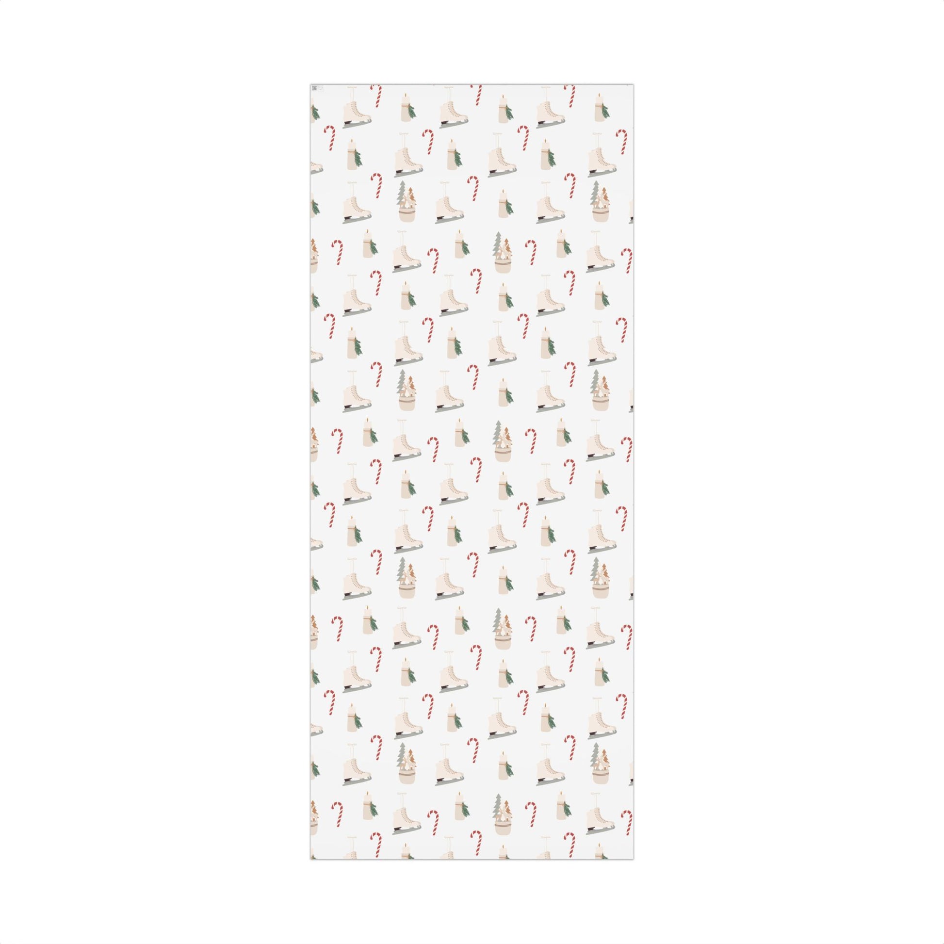 Wrap your gifts in festive cheer with this delightful candy cane and ice skates Christmas wrapping paper! Featuring cheerful peppermint stripes and vintage winter scenes, this thick, durable gift wrap brings holiday magic to every present. Perfect for Christmas morning or any winter celebration, it's sturdy enough to handle even the trickiest shapes. Make your gift-giving as sweet as the season itself!