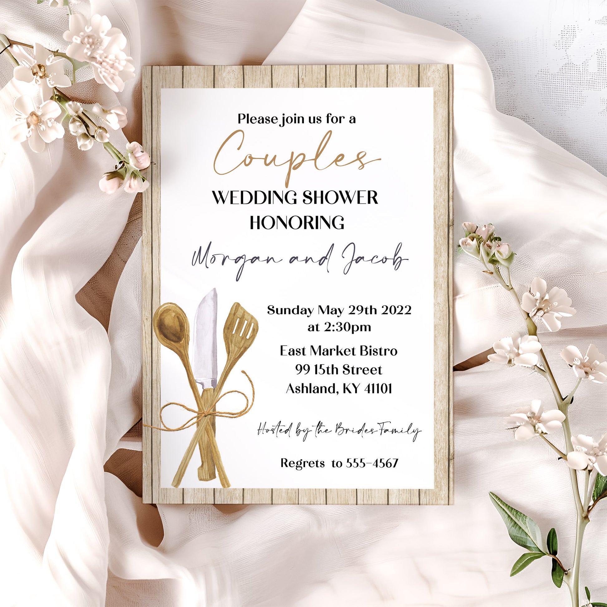 Celebrate love and togetherness with the Couples Kitchen Rustic Bridal Shower Invitation. Featuring a charming rustic design, this invitation sets the perfect tone for a warm and inviting bridal shower. Its tasteful kitchen-themed elements evoke a cozy atmosphere, ideal for couples who cherish shared moments. Crafted with attention to detail, this invitation ensures your event announcement is both elegant and heartfelt, making guests eager to join the celebration.