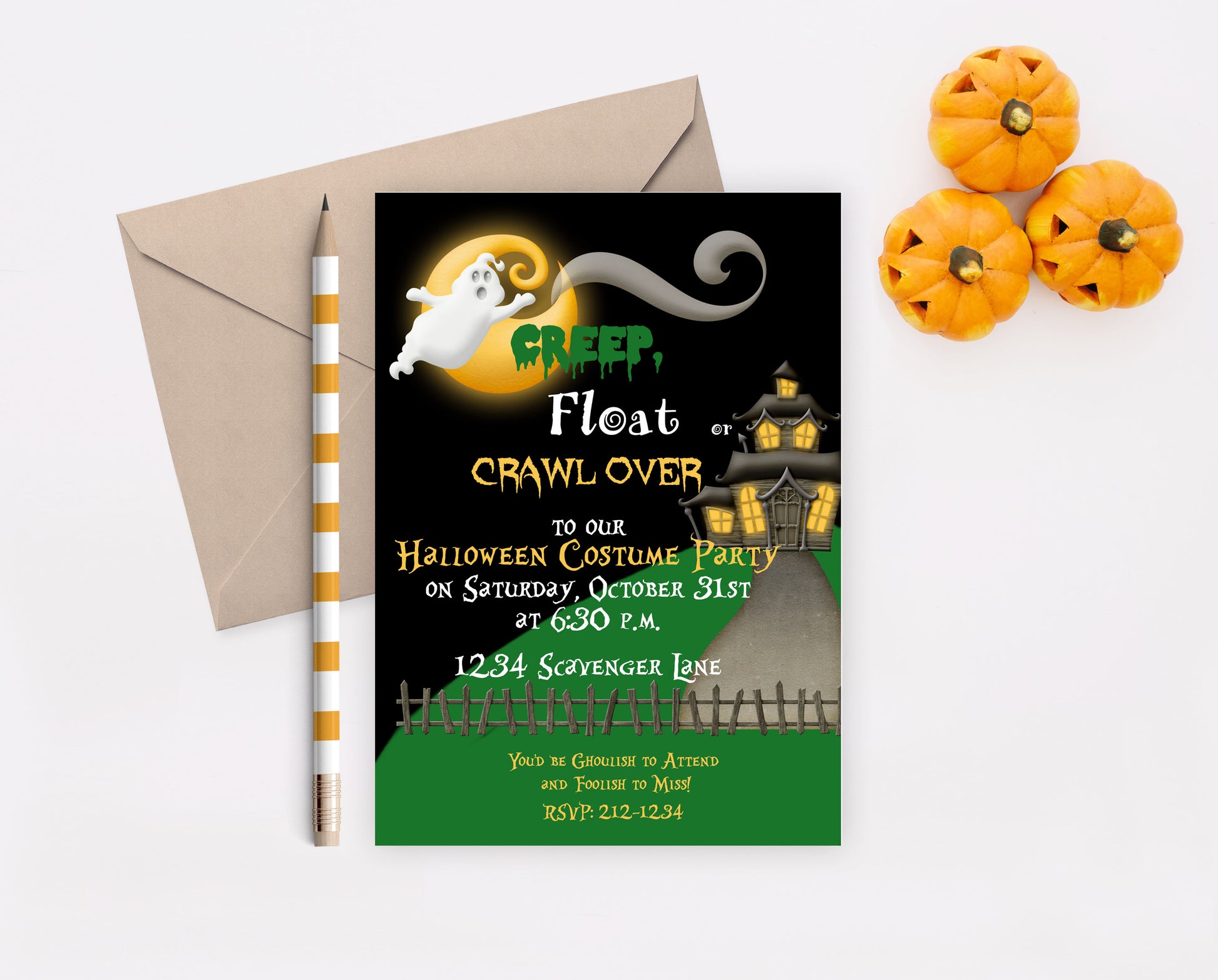 Creep, Float, Crawl Cemetery Halloween Invitation