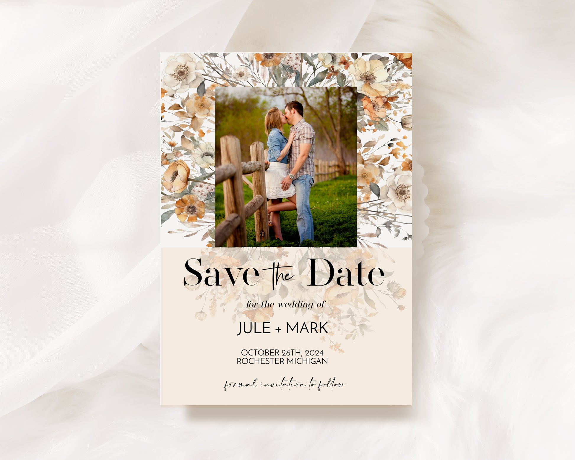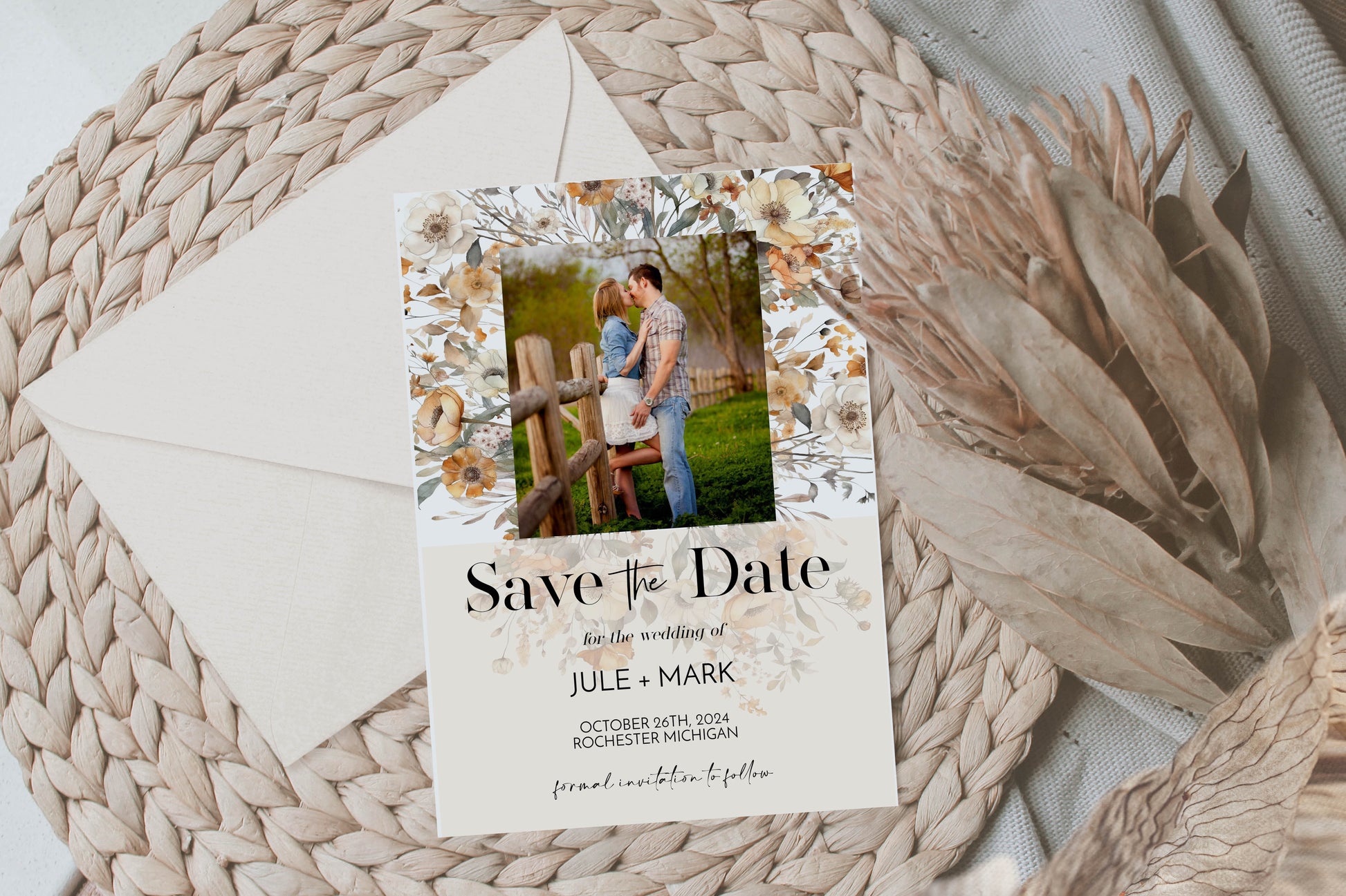 Capture the beauty of the fall season with our Fall Wildflower Photo Save the Date. Featuring vibrant, natural wildflowers, this save the date is perfect for any autumn event. Personalize with your own photo for a unique touch. Order now and make your special day truly memorable.