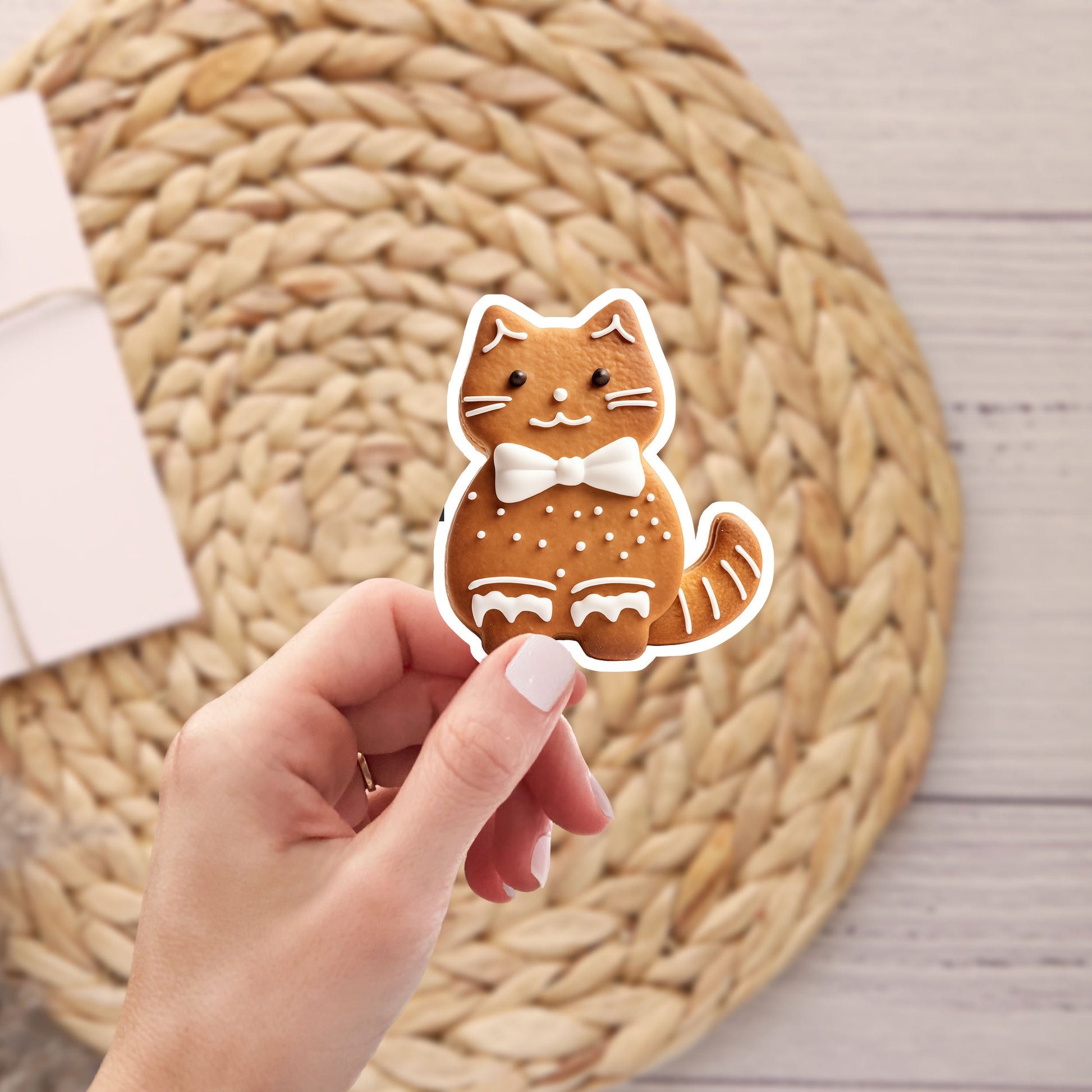 Sprinkle some holiday whiskers on your belongings with our Gingerbread Cat Waterproof Stickers! These sweet feline treats combine the charm of holiday baking with the playfulness of cats – without the risk of being eaten or shedding fur! Completely waterproof, these purr-fectly spiced designs will stick to water bottles, laptops, gift packages, or cookie jars through all your holiday adventures. Warning: May cause sudden cravings for cookies and spontaneous cat cuddles!