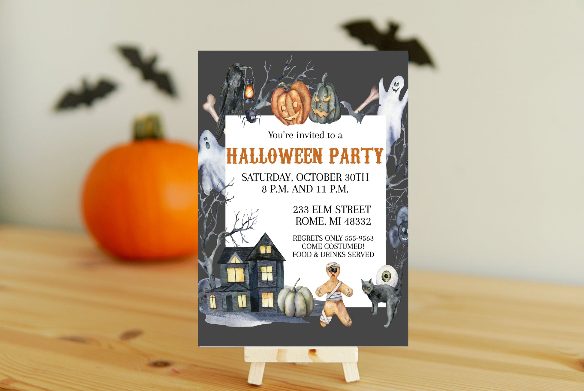 Celebrate Halloween with our spooky Haunted House invitation! This invitation features a haunted house design that will set the perfect tone for your scary Halloween party. Don't miss out on the fun - come join us for a howling good time!