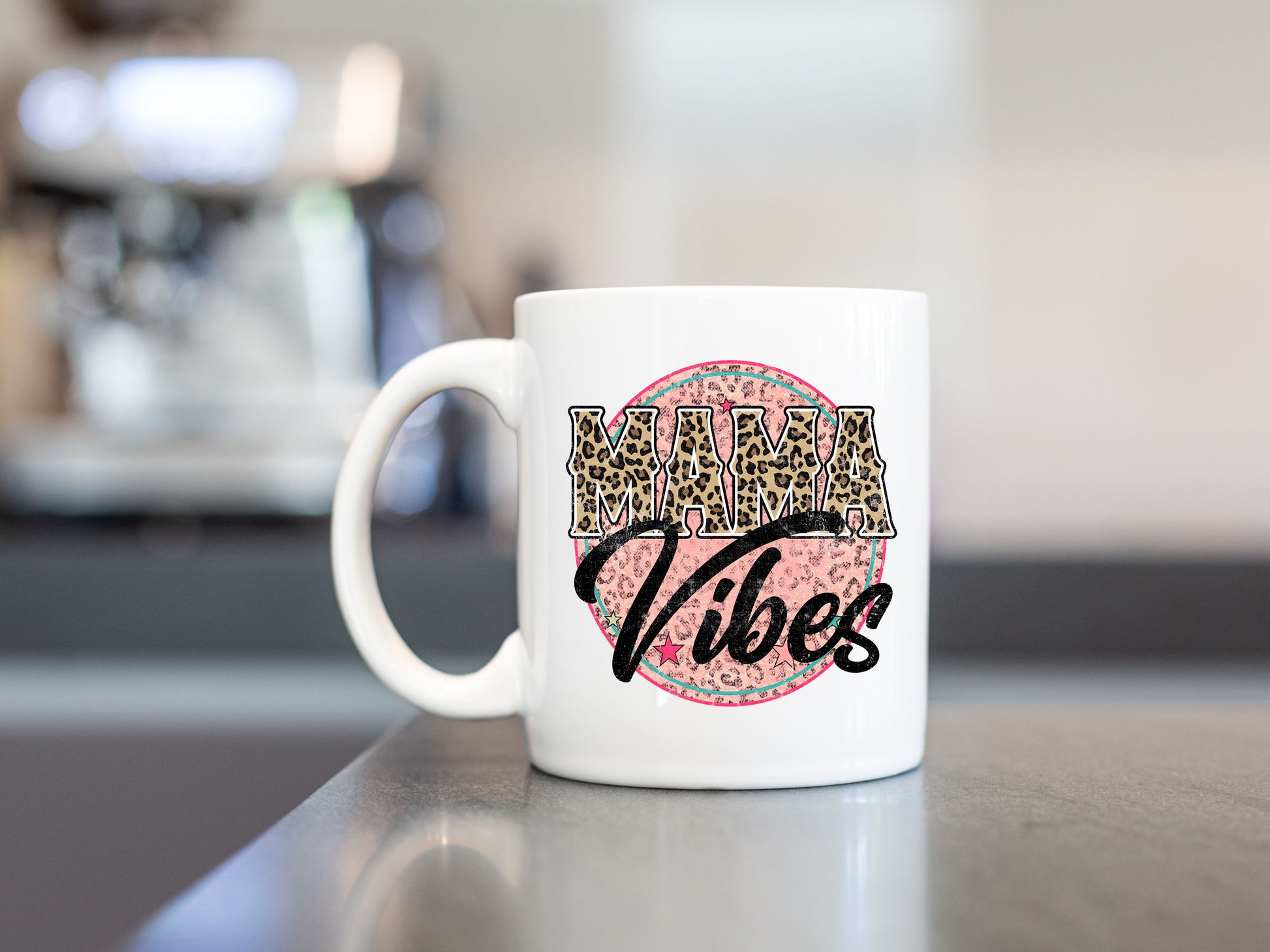 Mama Vibes Leopard Print Mug Mug Whether you're a mom boss or just in need of a little pick-me-up, this mug will bring some wild energy to your day - no caffeine needed!
