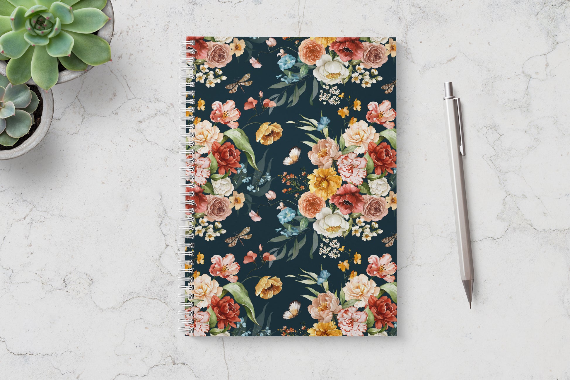 This Navy Flower Spiral Notebook combines style and functionality with its elegant navy floral design and durable spiral binding. Perfect for note-taking or journaling, this notebook is a great addition for professionals and students alike. Plus, with its compact size, it's convenient for on-the-go use.