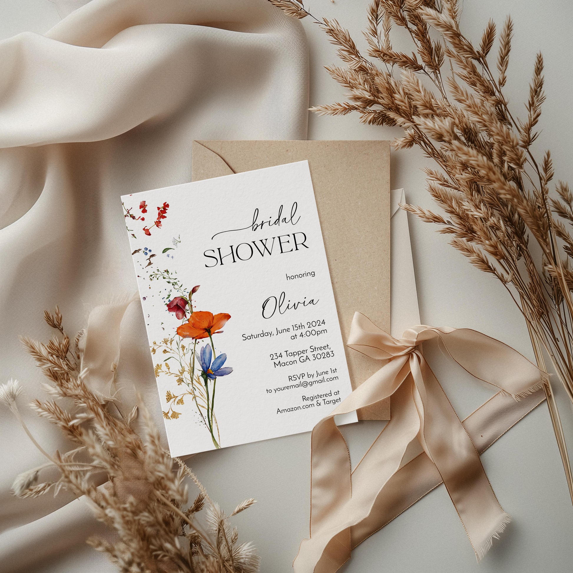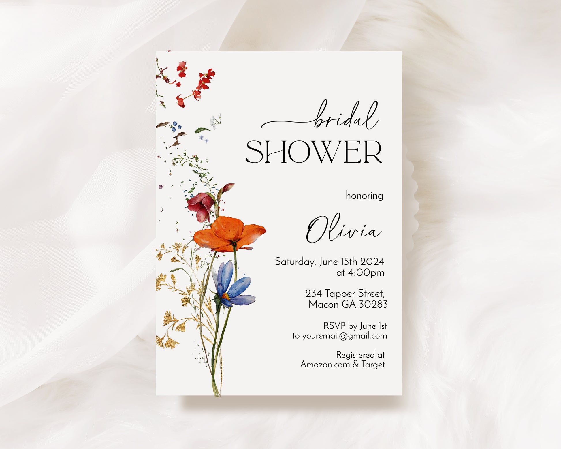 This elegant Orange & Blue Wildflower Bridal Shower Invitation features a charming combination of orange and blue wildflowers, perfect for any spring or summer bridal shower. The beautiful design will add a touch of sophistication to your special event.