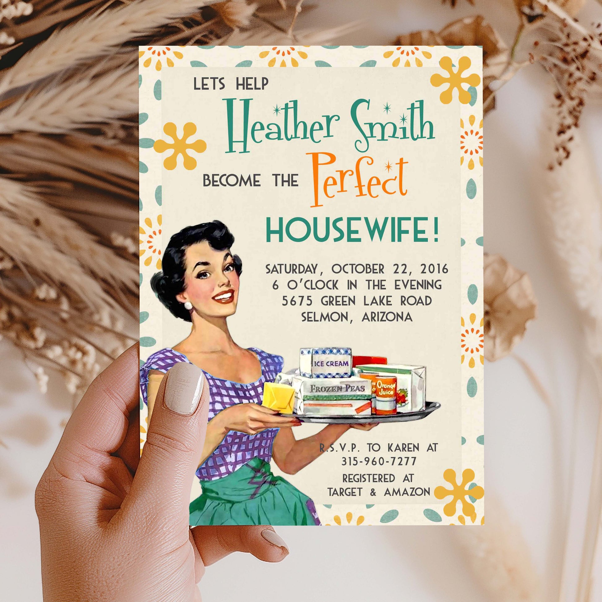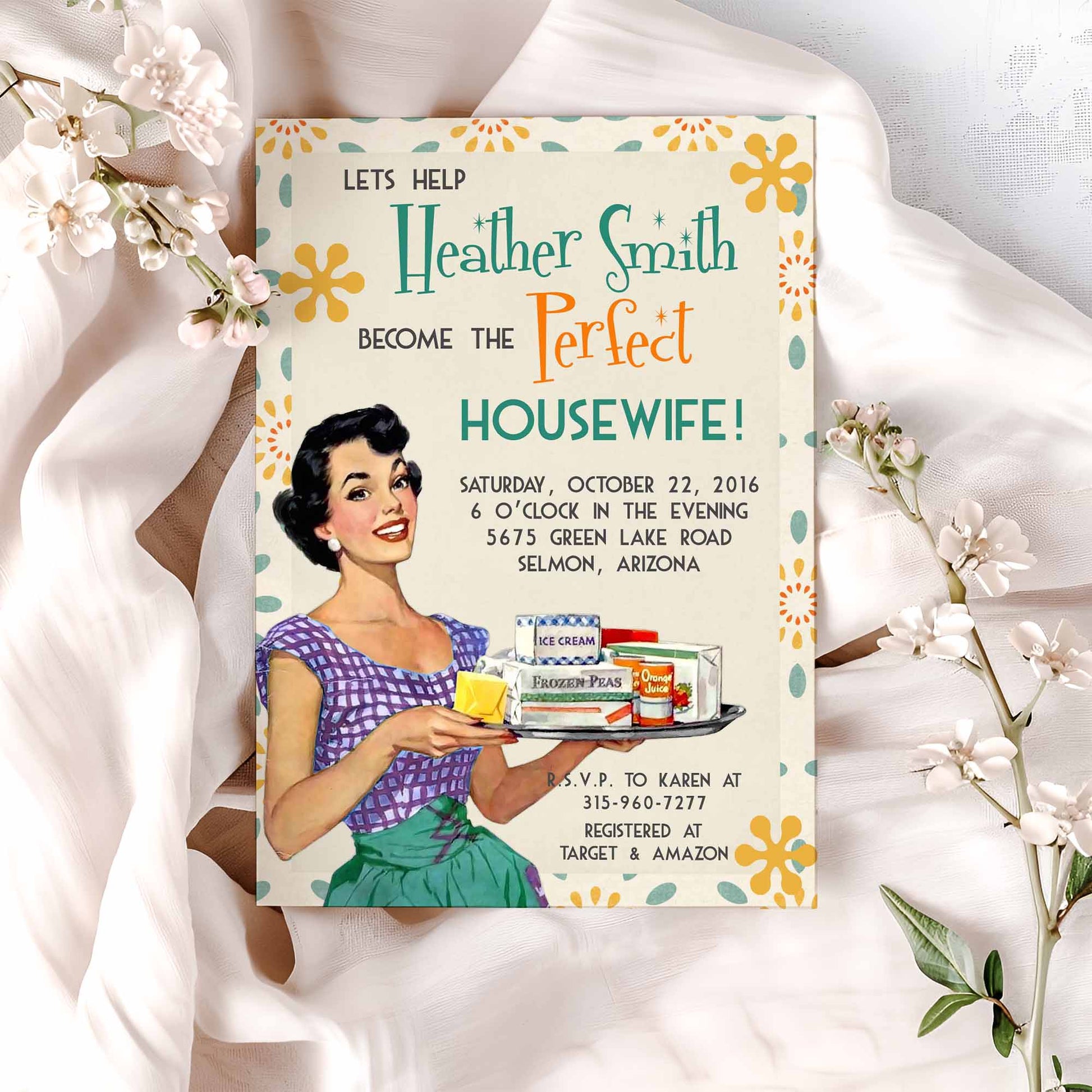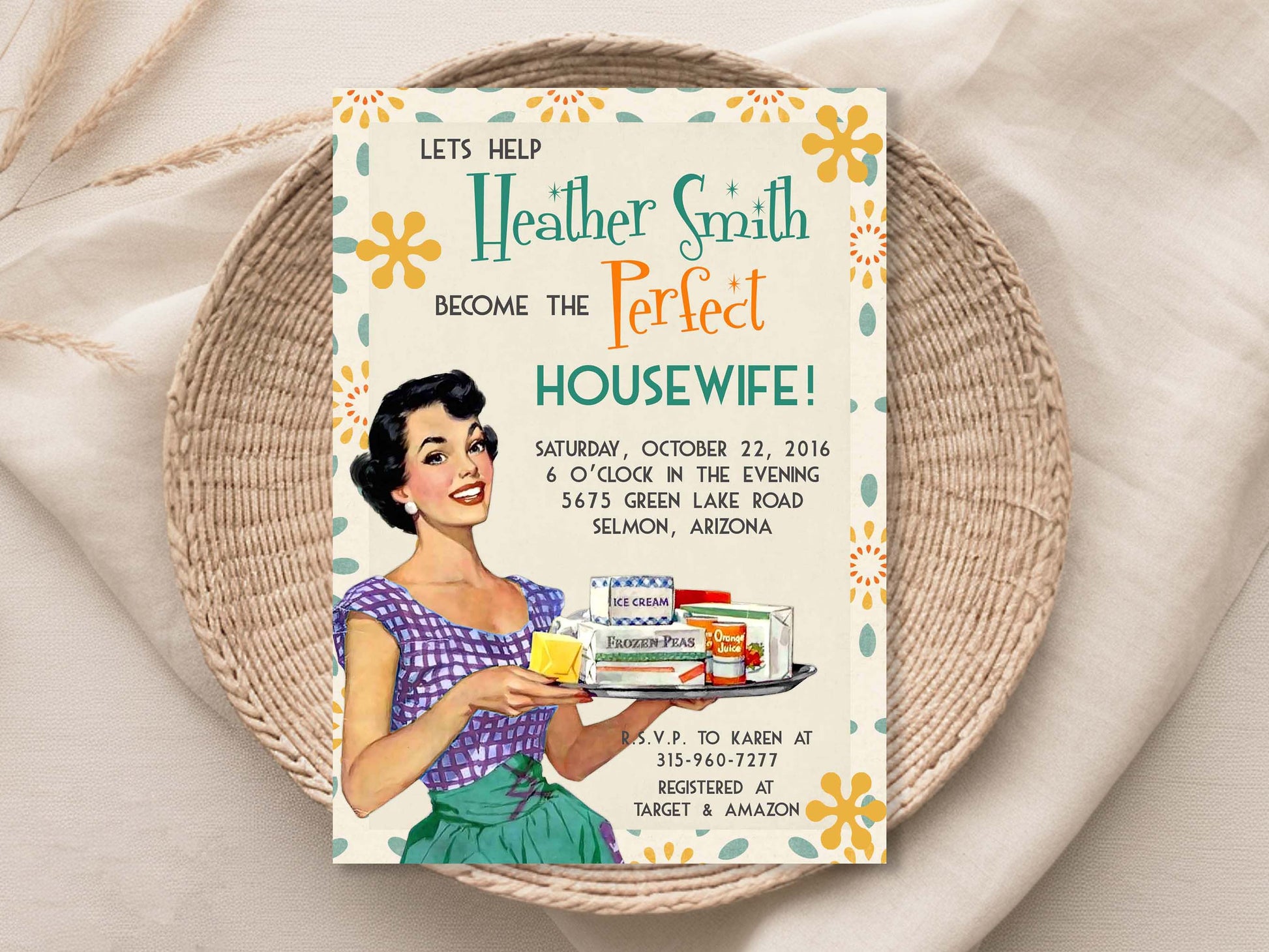 Make a fashionable statement with this Retro Housewife Bridal Shower Invitation! Featuring a lovely vintage style design, you'll make all the other '50s-inspired bridal showers green with envy. Perfect for a classic, chic affair! (And don't forget the pearls).