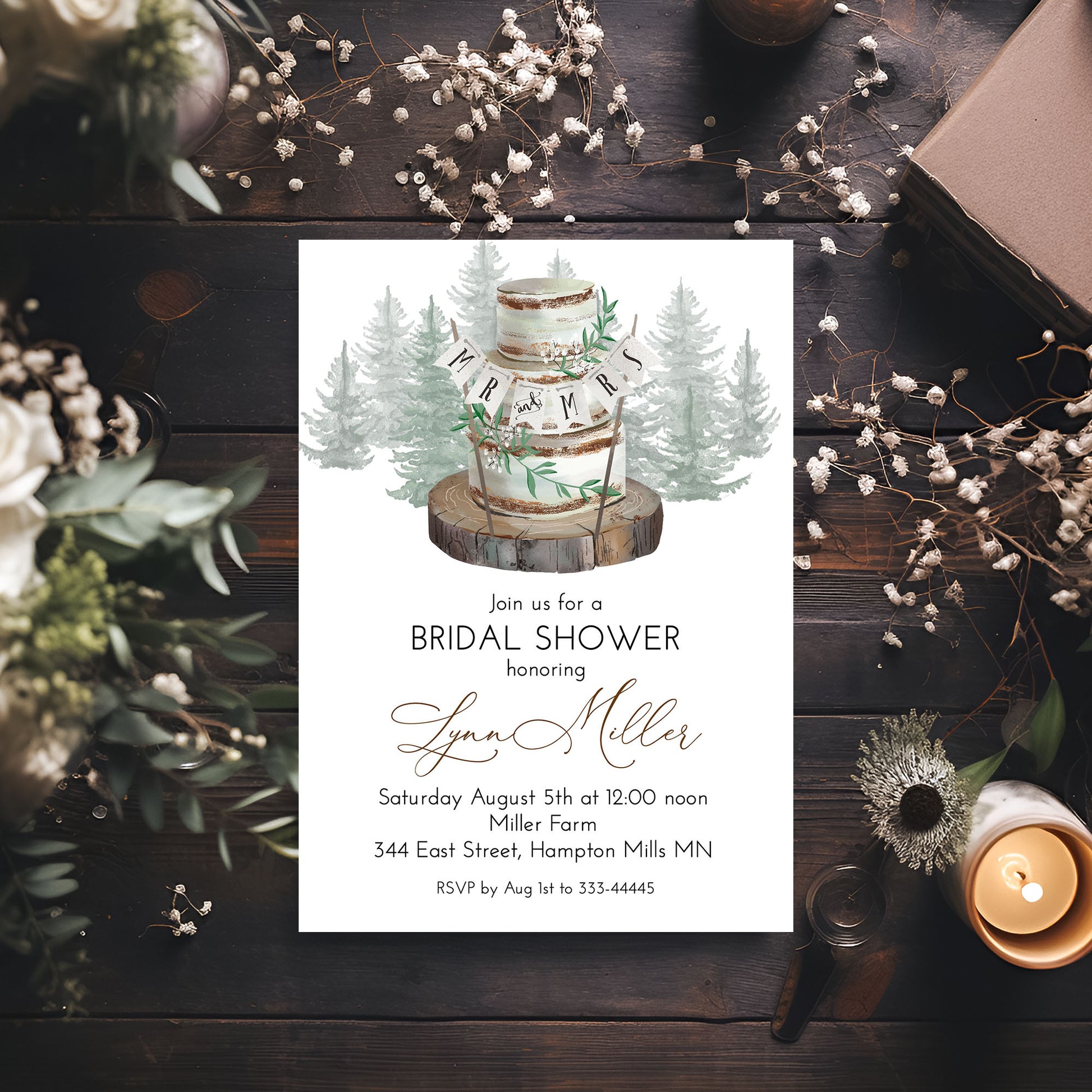 Featuring a charming rustic woodland design, our Rustic Woodland Cake Bridal Shower Invitation is a perfect way to invite your guests to your special occasion. The beautiful design is printed on heavy card stock, ensuring your guests will be impressed. Enjoy your special event in style with this lovely invitation.