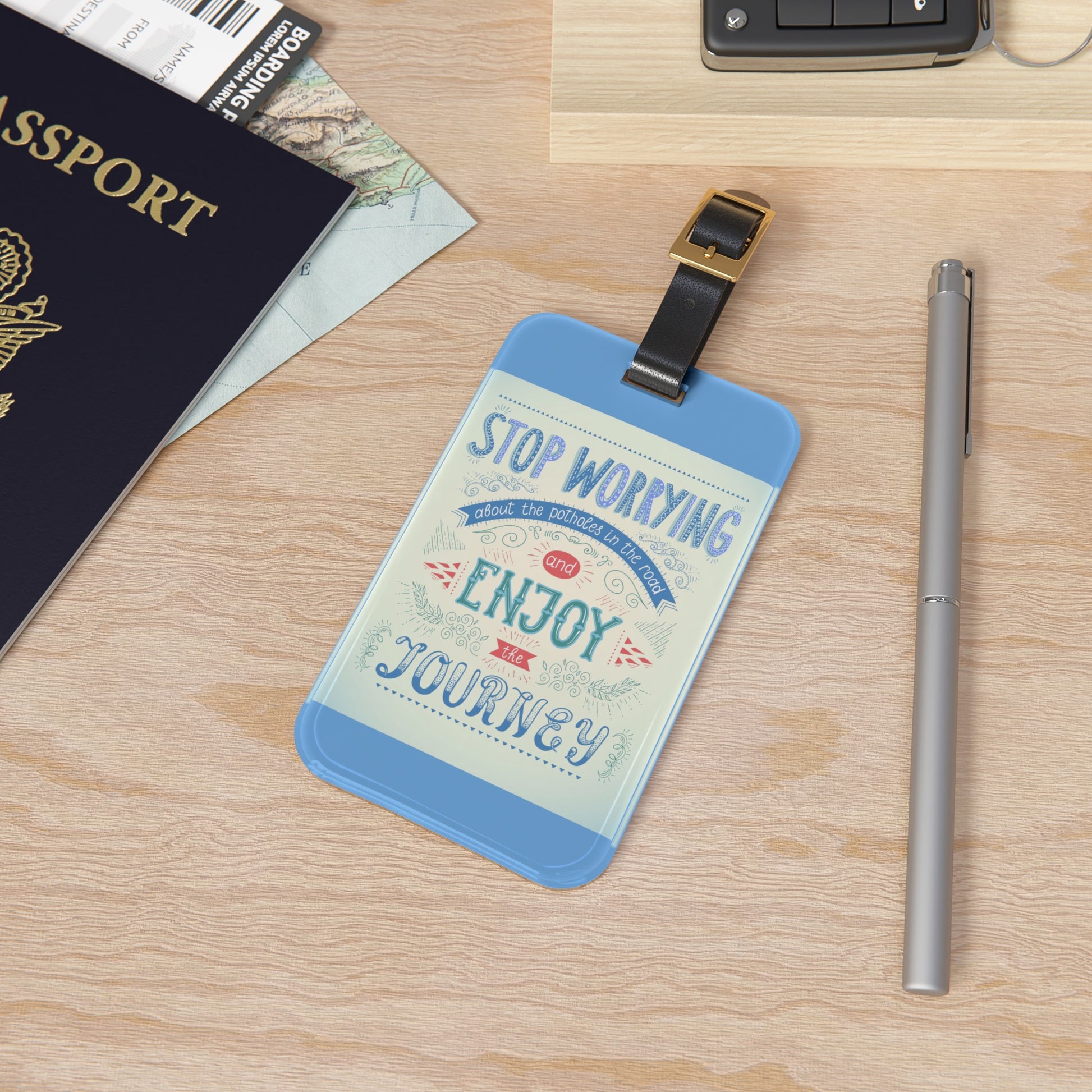 Our acrylic luggage tags come with a business card insert on the back where people can enter their contact information. They're super lightweight, so that they won't add any weight to baggage allowance. Each tag comes with a durable leather strap.
