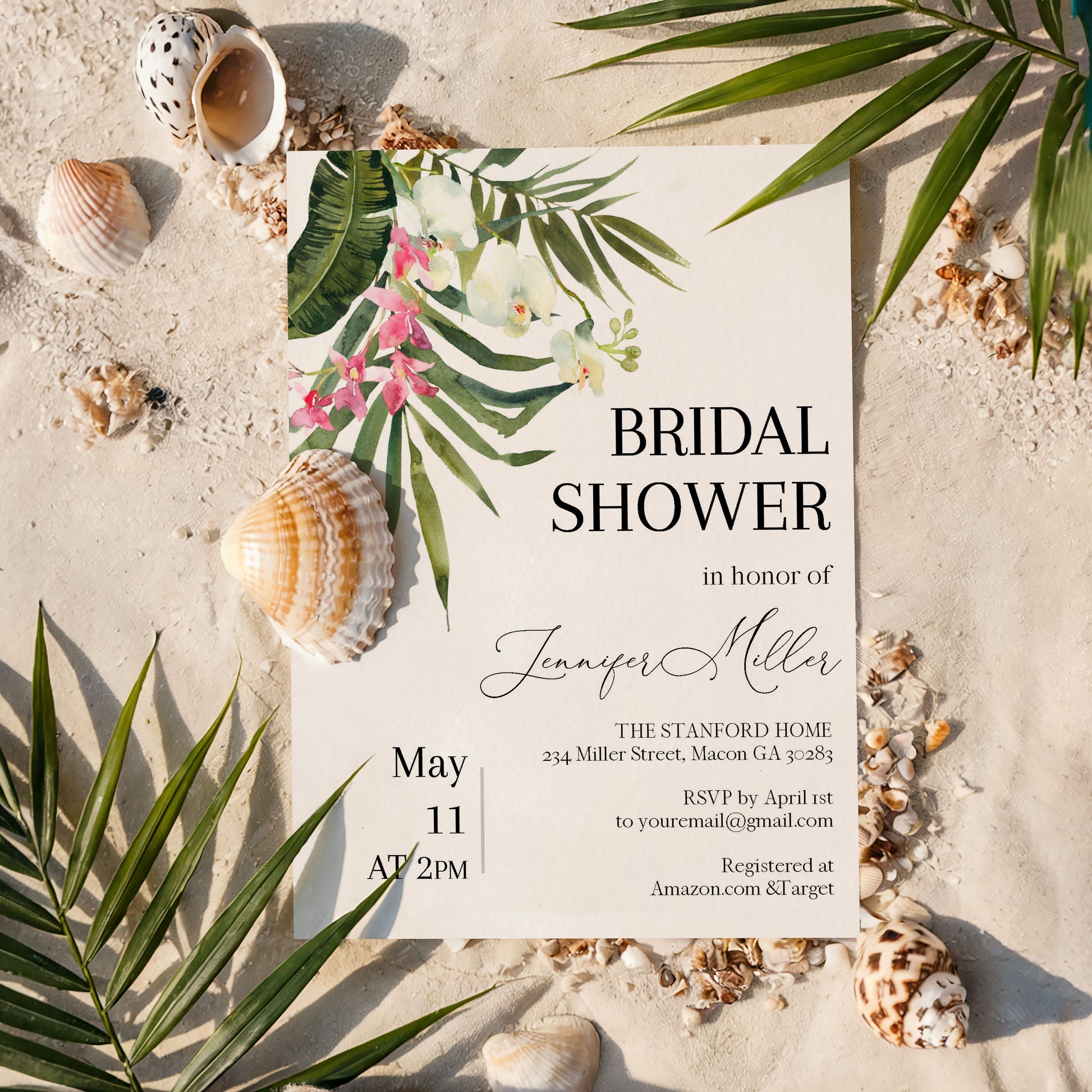 Invite your friends and family to the bridal shower with this beautiful Tropical Floral Bridal Shower Invitation. Its delicate floral imagery and vibrant colors capture the romantic, tropical atmosphere, making it perfect for any special occasion.